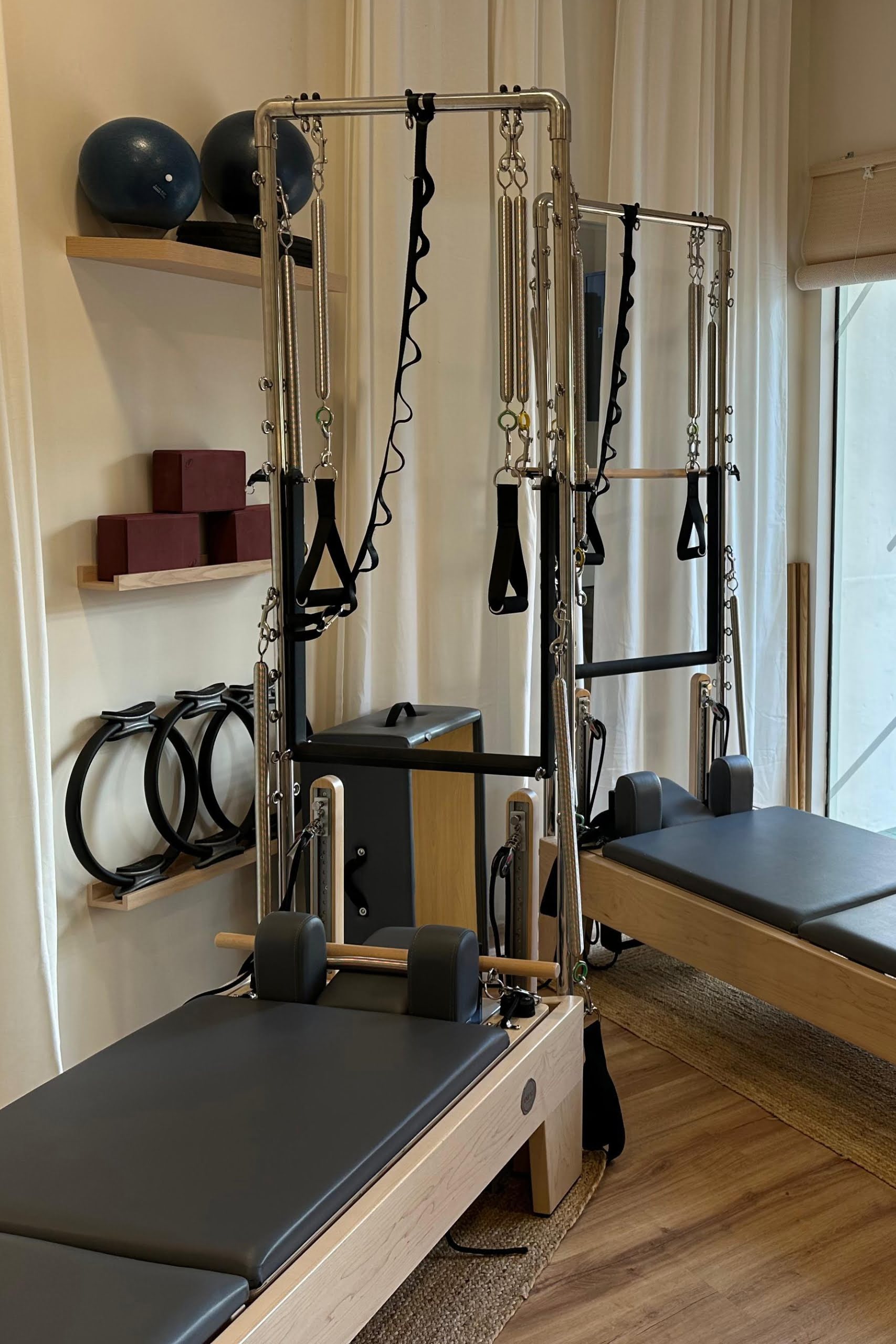 Sesiones grupales de 55 minutos de duración, con un máximo de 4 personas. Dirigidas por fisioterapeutas especializados en pilates con máquinas reformer con torre.